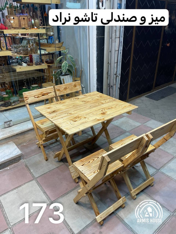 این پک ( میز و صندلی ) از چوب نراد روس استفاده شده برای مقاوم شدن در برابر رطوبت و ... سه دست کیلر ، ۱ دست سیلر ، ۱ دست جلا بر روی میز رنگ آمیزی شده است