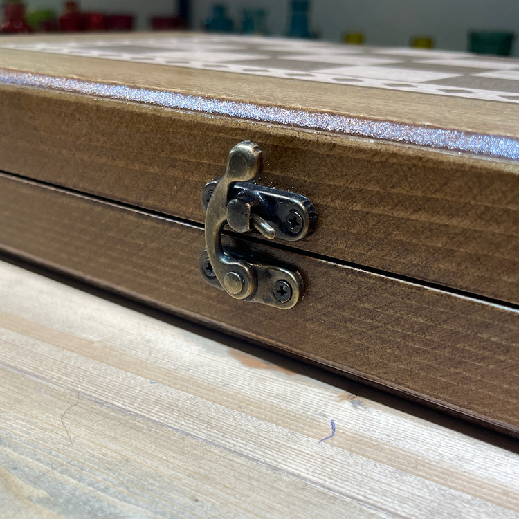 در این مدل تخته نرد و شطرنج از چوب نراد روس کلاف چوب نراد روس - کف 5 میل روکش راش استفاده شده و دارای قفل چفته برای جلوگیری از باز شدن صفحه شطرنج و ریختن مهره ها میکند