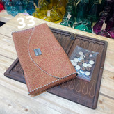 متعلقات همراه با کیف چرمی و مهره های بازی