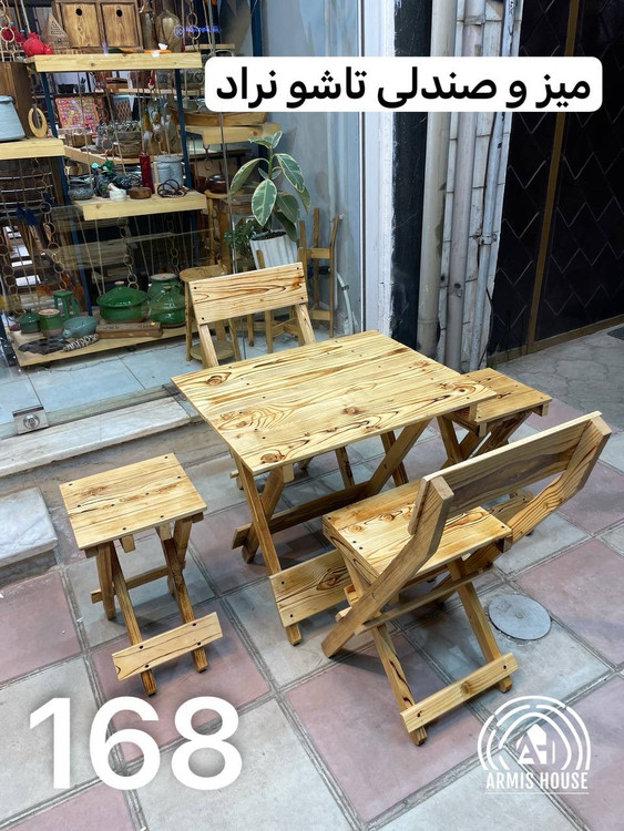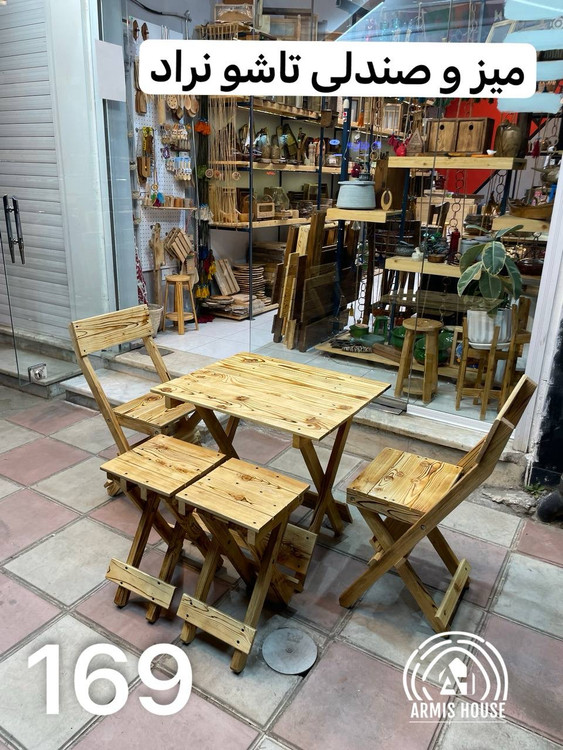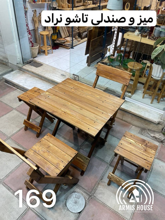 میز و صندلی تاشو چوبی نراد ۴ نفره