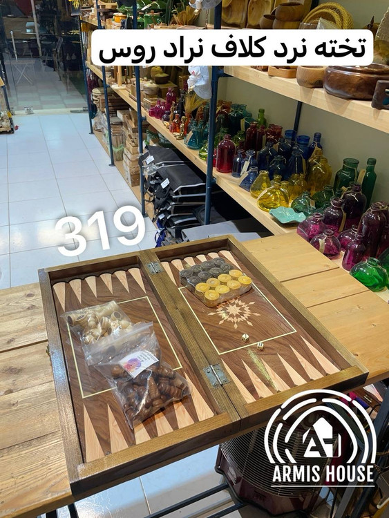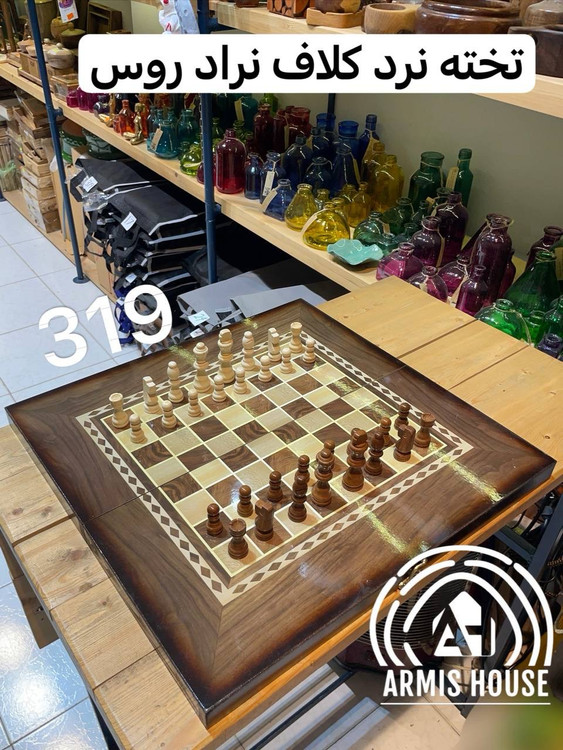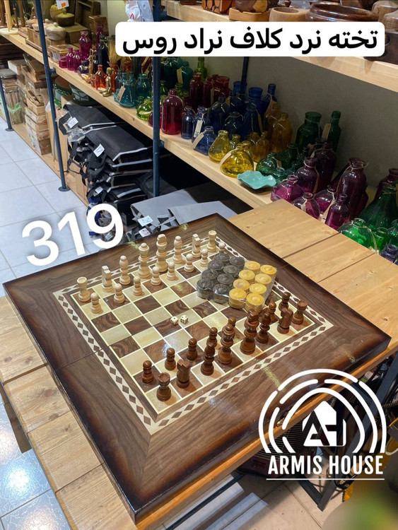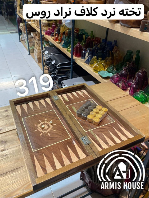 با تمام متعلقات ( تاس ، مهره تخته نرد ، مهره شطرنج ) : به منظور خرید شما به همراه (مهره و تاس تخته نرد) و مهره شطرنج درجه ی 1 صادراتی میباشد