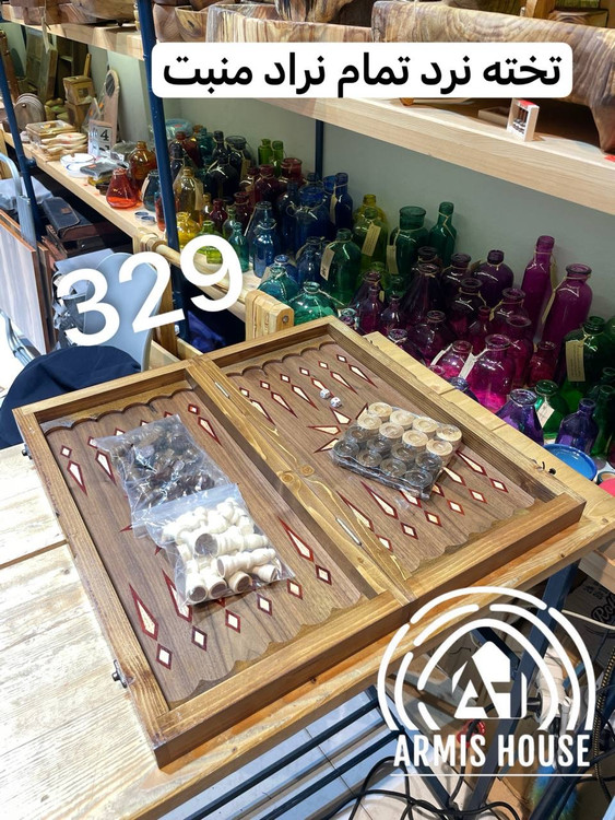 با تمام متعلقات ( تاس ، مهره تخته نرد ، مهره شطرنج ) : به منظور خرید شما به همراه (مهره و تاس تخته نرد) و مهره شطرنج درجه ی 1 صادراتی میباشد