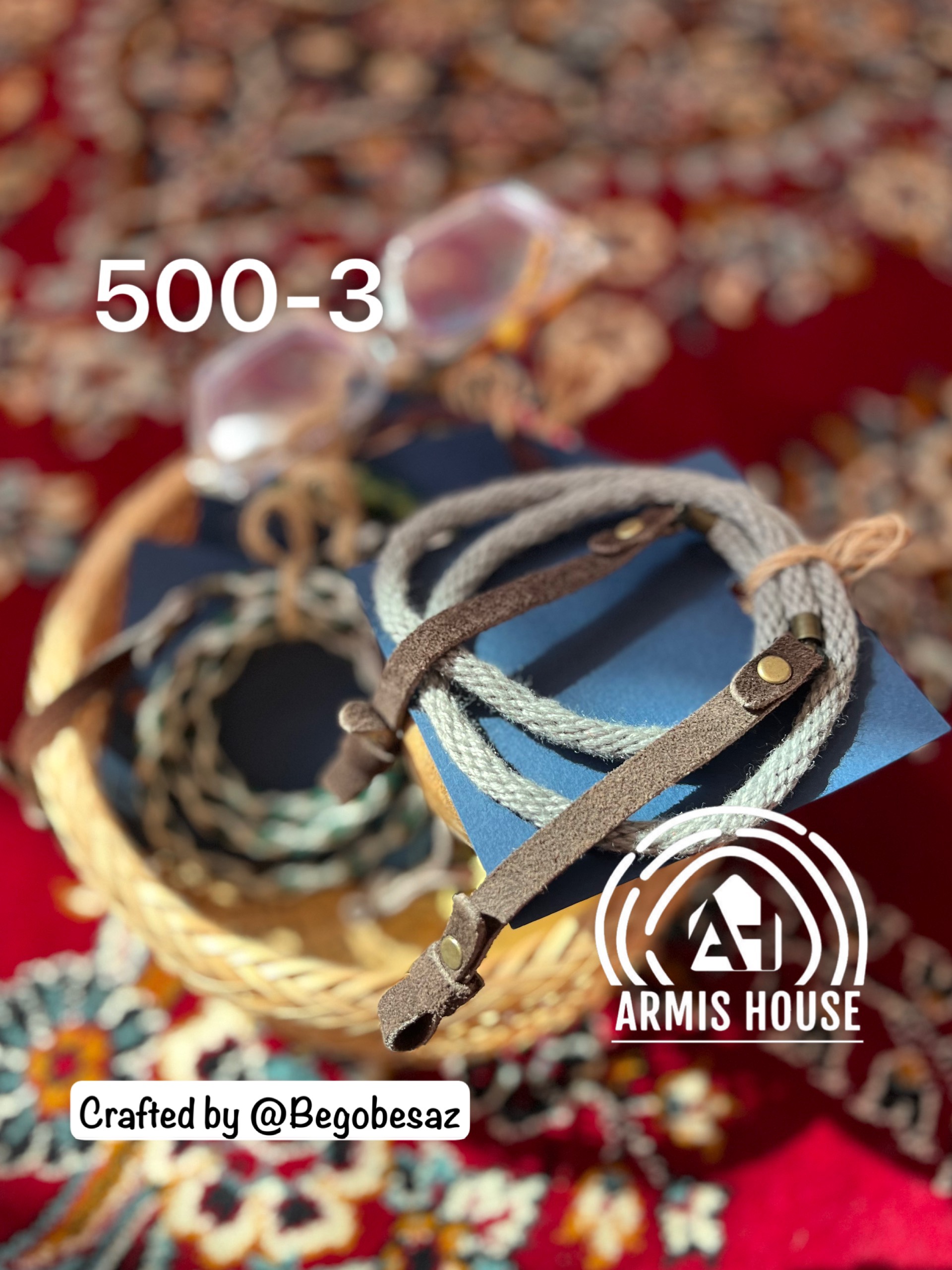 این بند عینک حاصل ترکیب هنر دست و متریال اصیله؛ نخ گلیم با بافتی گرم و اصیل در کنار چرم طبیعی، محصولی ساخته که هم کاربردیه و هم یک اکسسوری خاص و متفاوت.