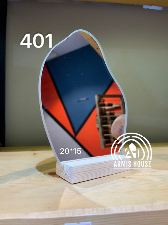 آینه دکوراتیو مینیمال با پایه چوبی نراد روس | ابعاد ۲۰×۱۶