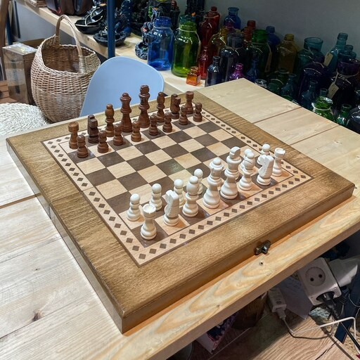 با تمام متعلقات ( تاس ، مهره تخته ، شطرنج )