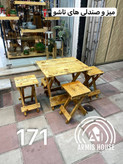 این پک ( میز و صندلی ) از چوب نراد روس استفاده شده برای مقاوم شدن در برابر رطوبت و ... سه دست کیلر ، ۱ دست سیلر ، ۱ دست جلا بر روی میز رنگ آمیزی شده است